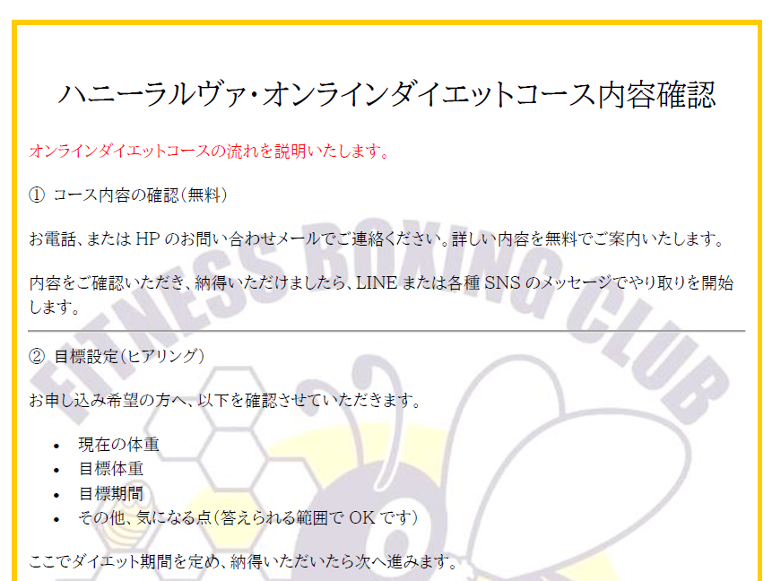 オンラインダイエットコースの内容はこちら↓